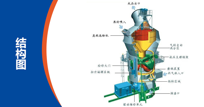 電動機驅動減速機帶動立式磨機磨盤轉動,將粉磨的石墨碎料由鎖風喂料設備送入旋轉的磨盤中心,在離心力作用下,石墨碎塊向磨盤周邊移動,進入粉磨輥道。在立磨磨輥壓力的作用下,石墨碎塊受到擠壓、研磨和剪切作用而被粉碎。同時,熱風從圍繞磨盤的風環高速均勻向上噴出,粉磨后的超細石墨粉被風環處的高速氣流吹起,一方面把粒度較粗的石墨粉吹回磨盤重新粉磨,另一方面對懸浮超細石墨粉進行烘干,細粉則由熱風帶入分離器進行分級,合格的超細石墨粉細粉隨同氣流出磨,由收塵設備收集下來,即為產品,不合格的石墨粗粉在分離器葉片作用下重新落至磨盤,與新喂入的物料一起重新磨,如此循環,完成粉磨作業全過程。